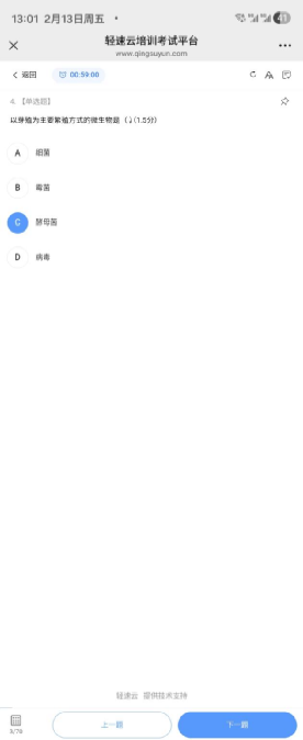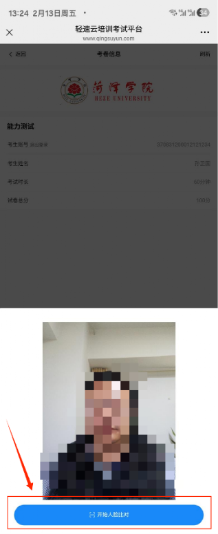 注意:答题过程中请正对手机前置摄像头,考试过程中系统不定时自动抓拍人脸照片。